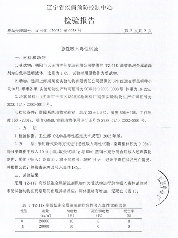 清洗劑(疾控中心)檢測報告(二)
