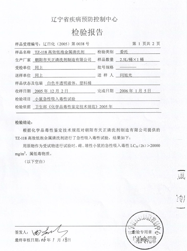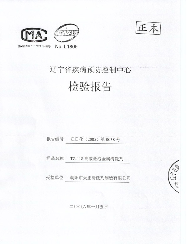 清洗劑(疾控中心)檢測報告(一)