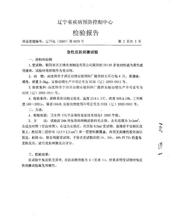 清洗劑(疾控中心)檢測報告(三)