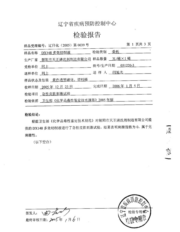 切削液(疾控中心)(一)